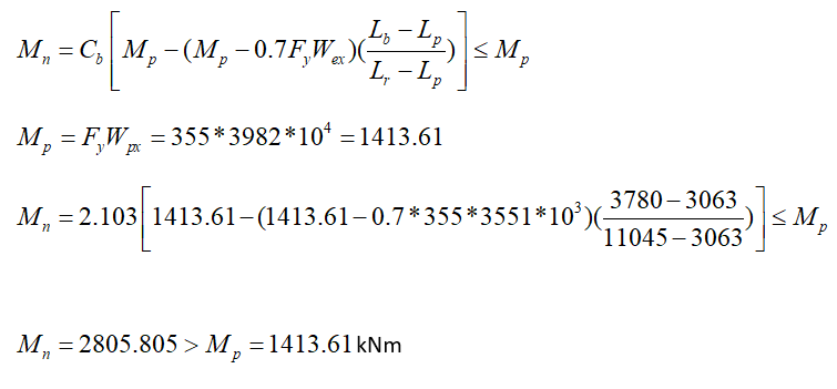 In this case, the characteristic bending moment strength should be calculated by ÇYTHYE Equation 9.3. Cb, the lateral-torsional buckling modification factor, used in this calculation is determined automatically according to the moment values read on the relevant column.