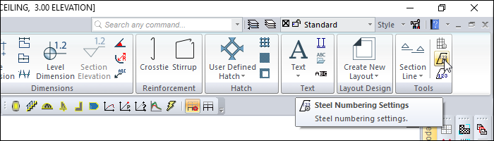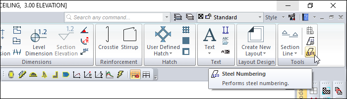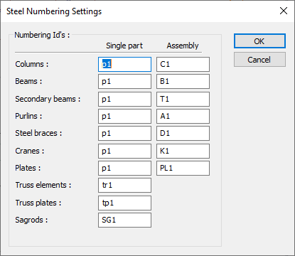 Group and pose similar parts of steel elements and details is performed using the Steel Numbering command. Before numbering, the starting numbers are determined according with the Steel Numbering Settings command.