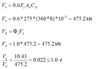 Shear capacity check is as follows: