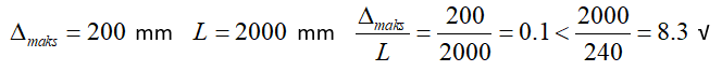Deflection control is done under G+Q load combination as per ÇYTHYE 15.1. It is taken as the displacement limit value (L/240). According to analysis result, the maximum relative displacement between the supports,