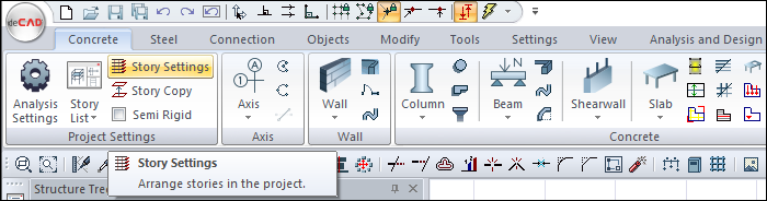 Click on the Concrete/Project Settings/Story Settings icon in the ribbon menu.