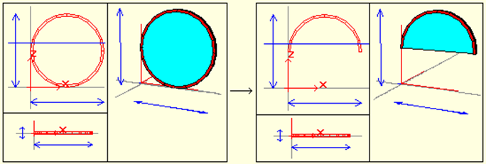 Case/wing edges are hidden with the Keep Case-Wing Edges command. For example, to make a semicircular safe, it will be sufficient to hide the remaining edges of the circular crate in the lower half.