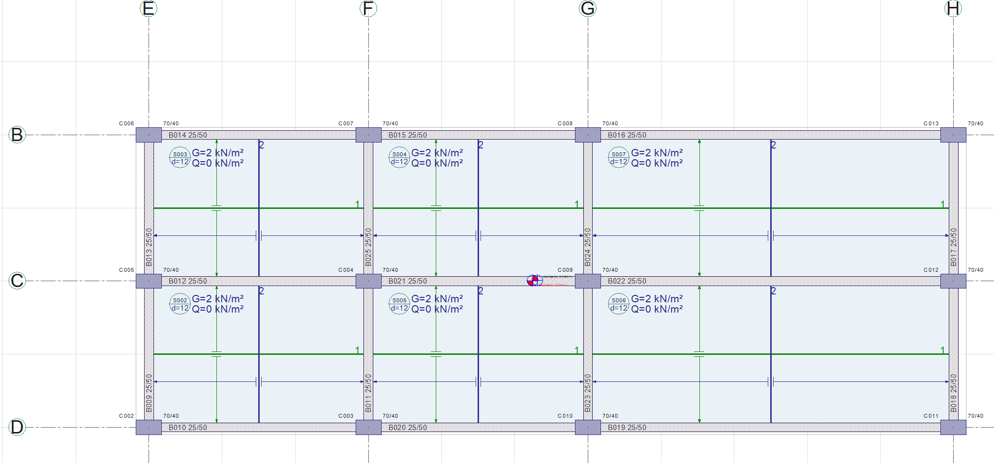 Let's determine the effective relative storey drifts obtained in the earthquake loading of a 3-storey building with a beam slab system consisting of a reinforced concrete moment transfer frame with a span of 2 * 4 m in the Y direction and a span of 2 * 6 + 8 m in the X direction, and let's compare it with the limit value. .