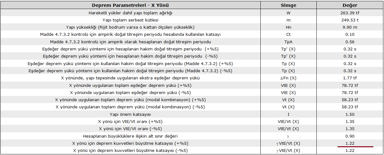 The equivalent base shear force amplification coefficient given for the X direction in the dynamic analysis report was determined as 1.22. The raw values read on the perspective screen need to be incremented by 1.22. According to this;