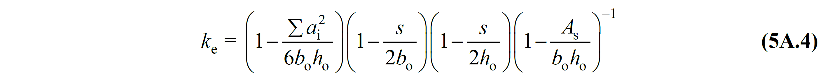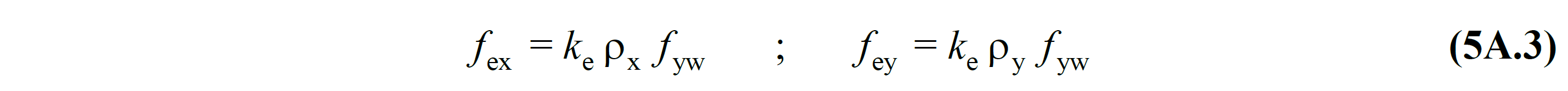 In these relations, f yw is the yield strength of the transverse reinforcement, ρ x and ρ y are the volumetric ratios of the transverse reinforcement in the respective directions, and k e is the coefficient of winding efficiency defined in Equation (5A.4) .
