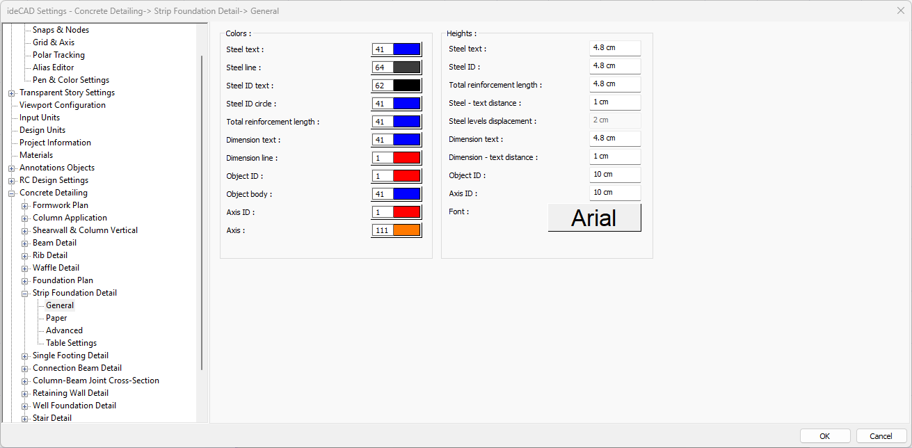 Color, size, type, layout and table settings of the texts belonging to strip foundation details are arranged.