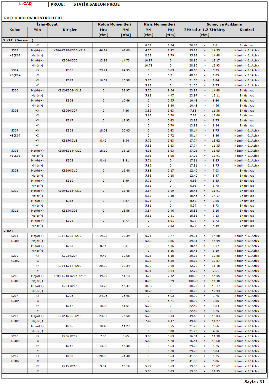 In structural systems consisting of only frames or a combination of walls and frames, it is checked whether the sum of the bearing strength moments of the columns joining each column-beam node is at least 20% greater than the total bearing strength moments of the beams joining that node. (M ra + M rü ) ≥ 1.2 (M ri + M rj )