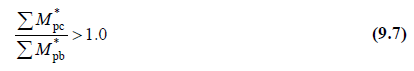 Eq. (9.7) shows the ratio of bending moment capacities of columns and beams on the joint, where Mpc* is computed according to Eq. (9.8a) or Eq. (9.8b) and Mpb* is computed according to Eq. (9.9a) or Eq. (9.9b). If the reduced beam section is used the Eq. (9.9c) or Eq. (9.9d) must be used.