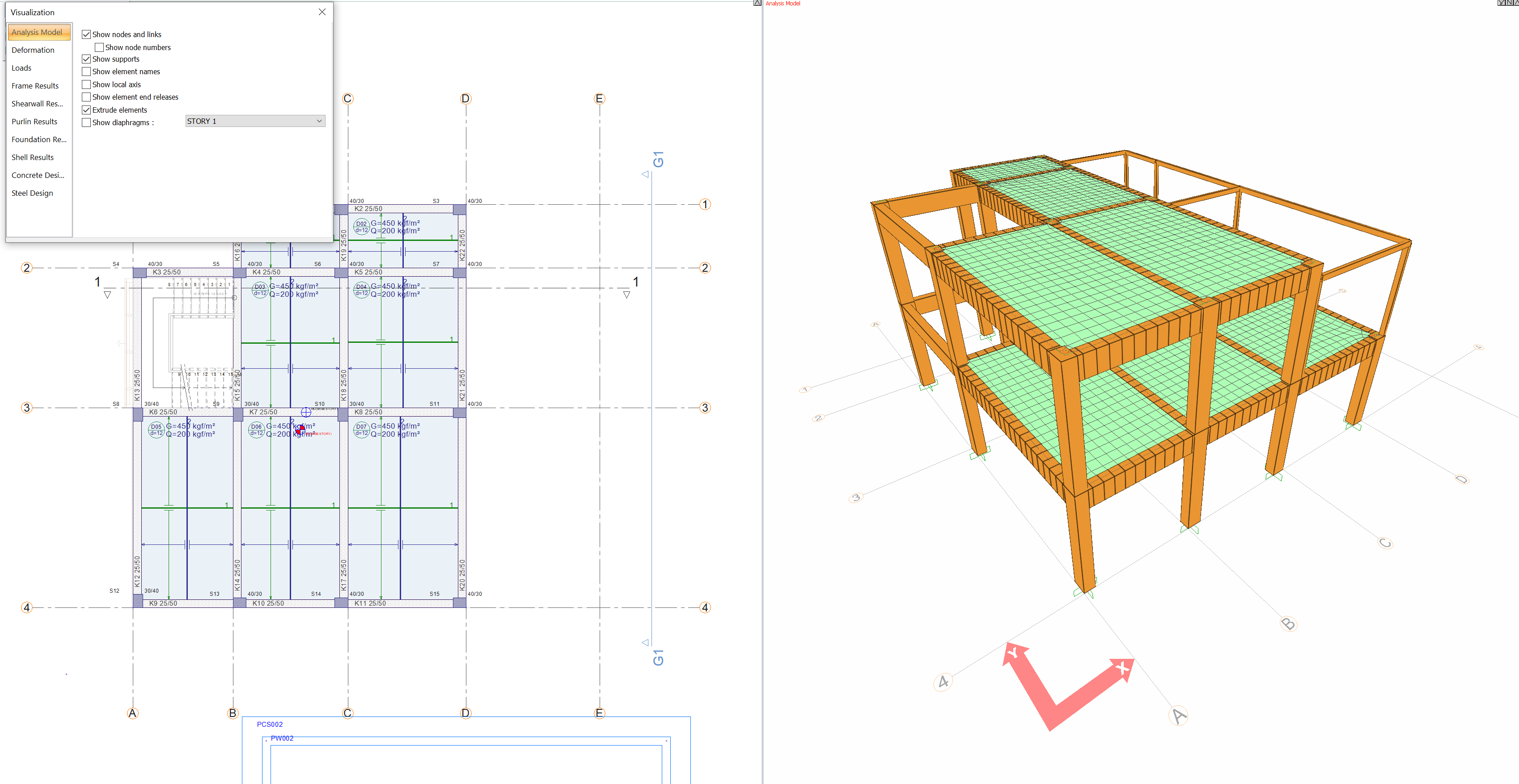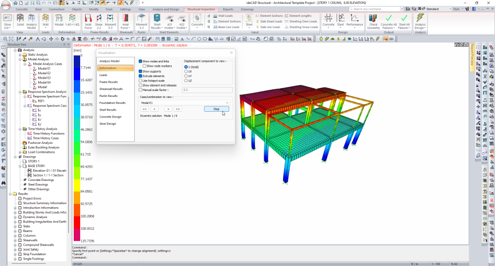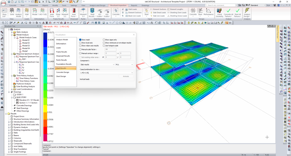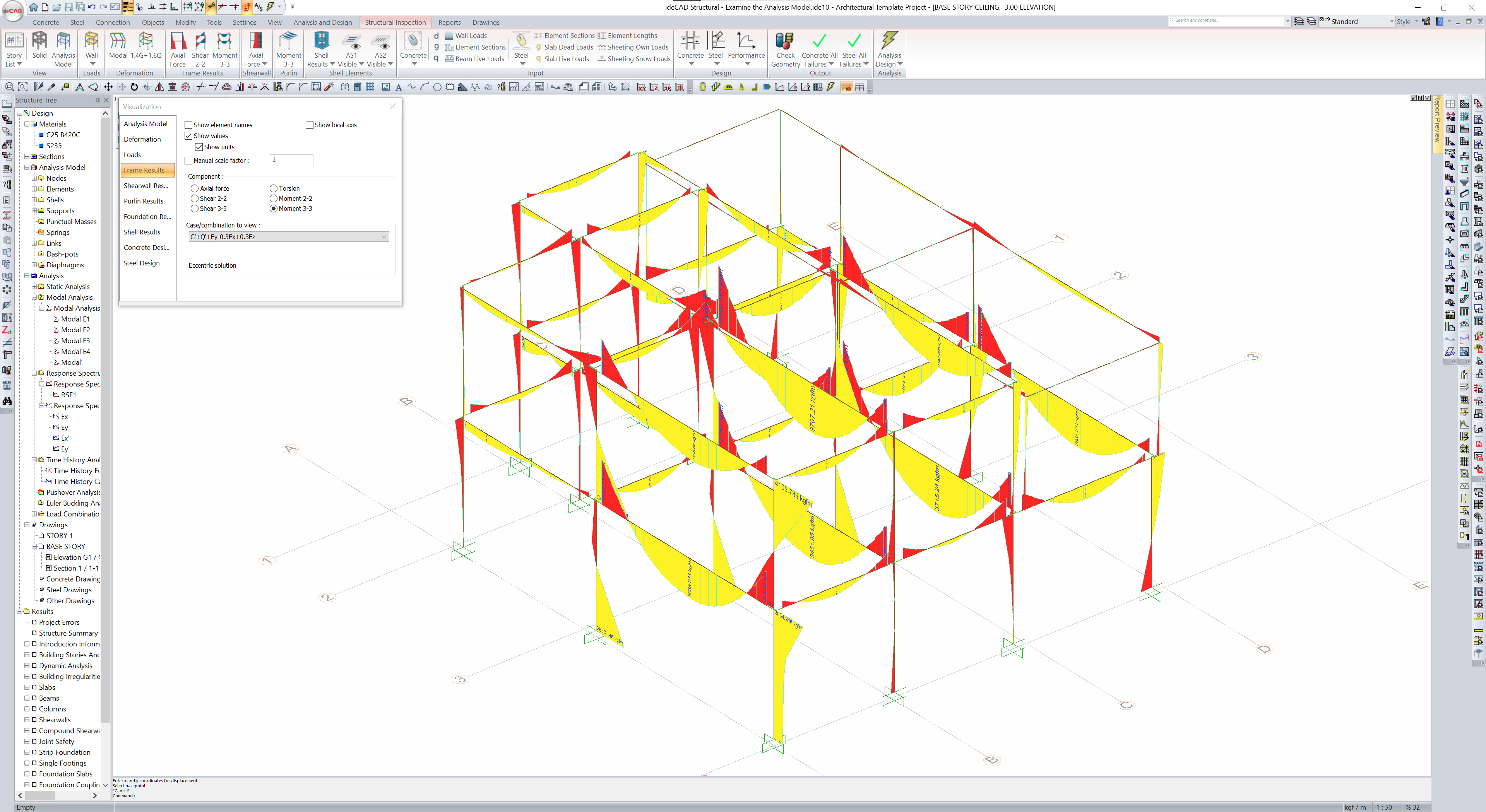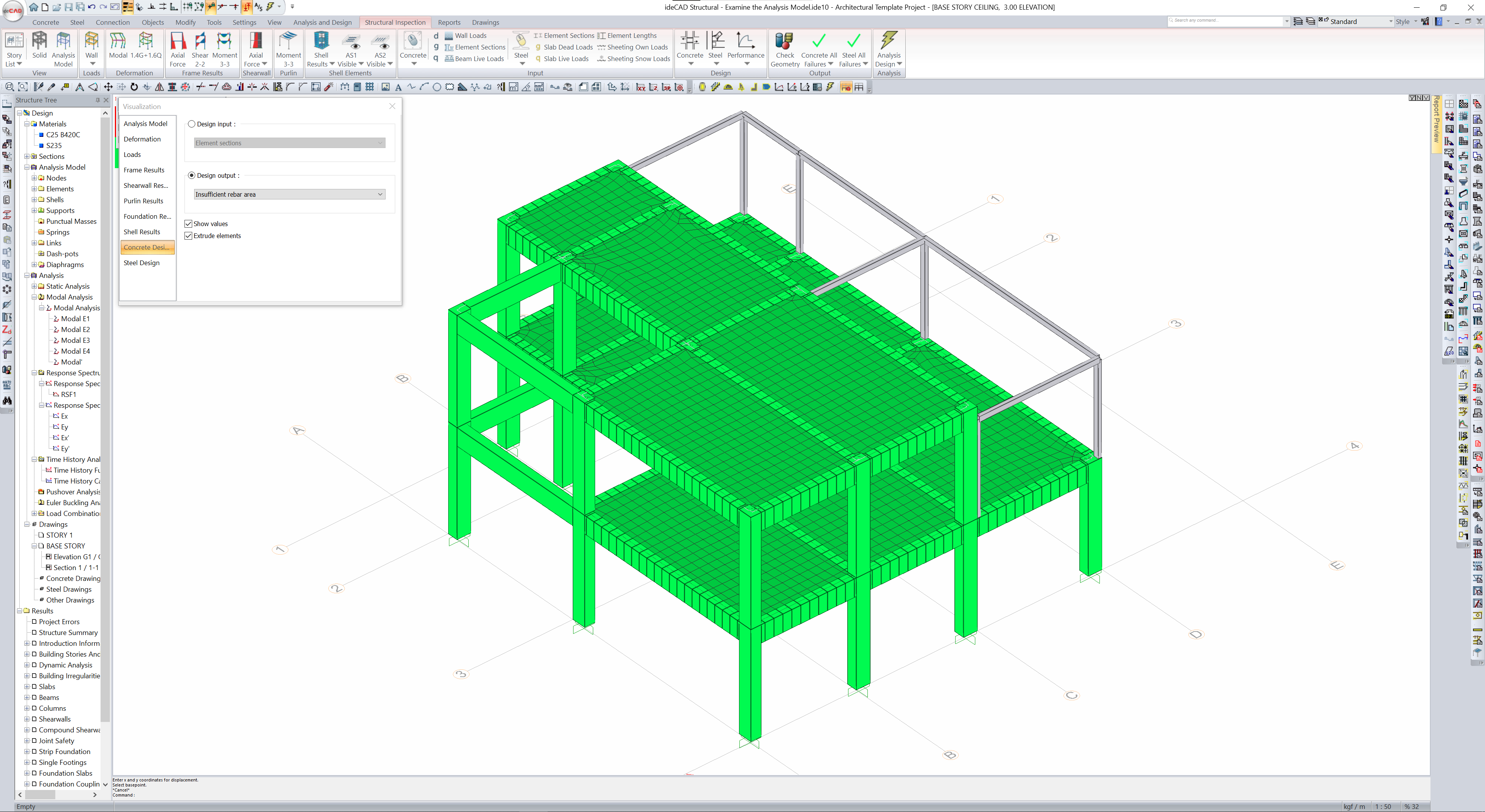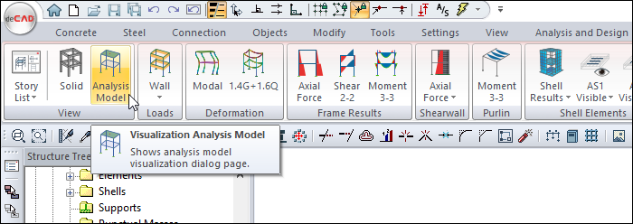 Open the Structural Analytical Model file with the optimized structural and examine the results by using Analysis+Design command. |