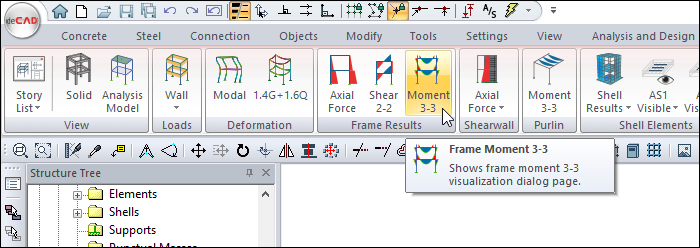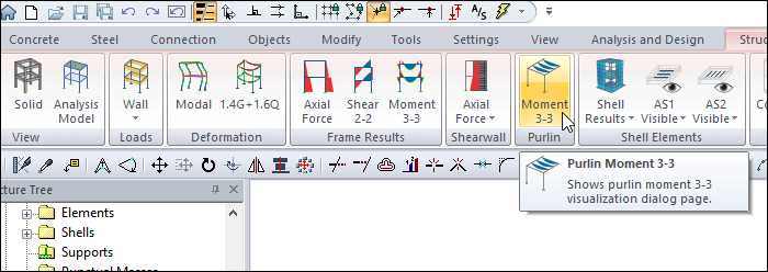 From the Ribbon Menu, Purlin heading, click on the Moment 3-3 command.