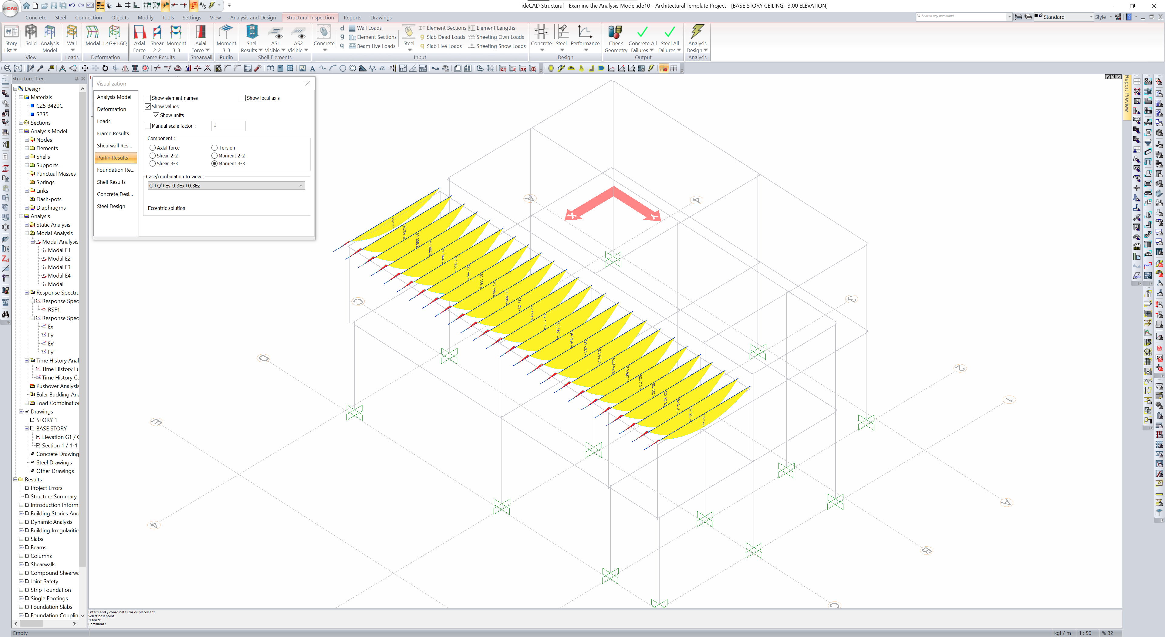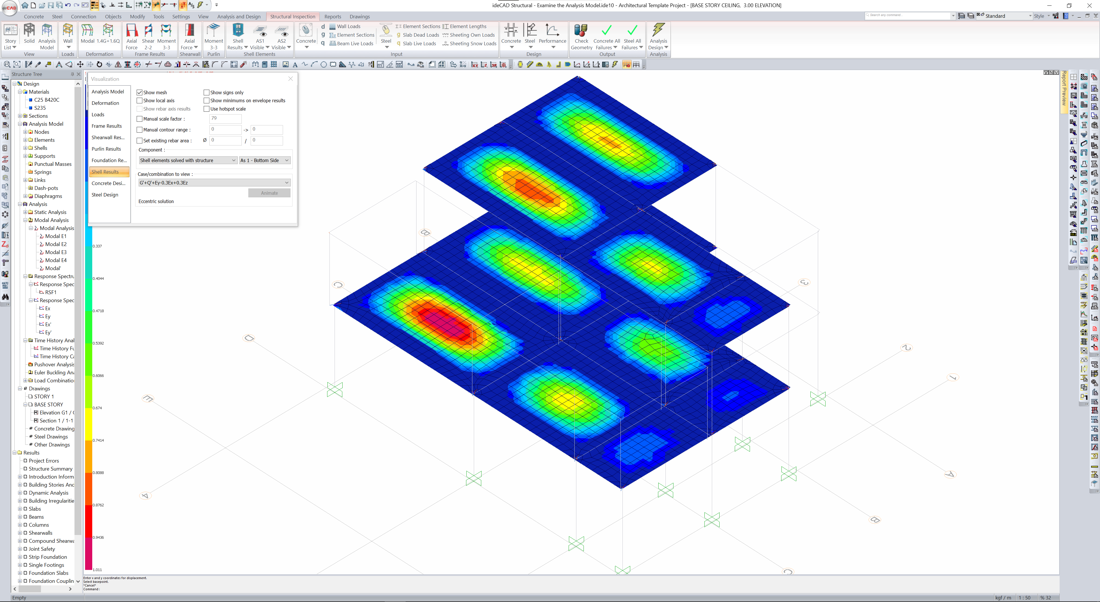 In the Visualization Window, the required reinforcement area values of the shell elements are created.