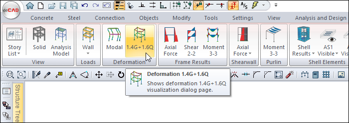 From the Ribbon Menu, Deformation heading, click on the 1.4G+1.6Q command.