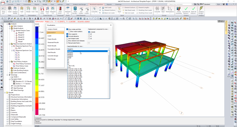 Click the Visualization Dialog, Deformation tab, Case/combination list.