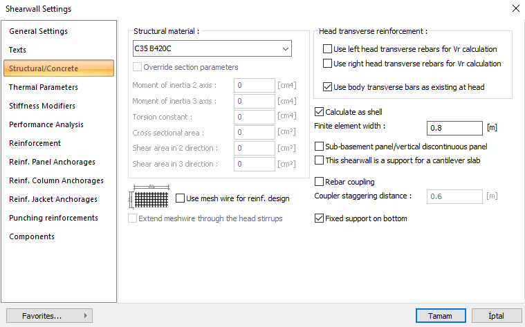 For reinforced concrete buildings, it is important to consider the effects of axial, flexural, and shear cracking in modeling the effective stiffness of the structural elements. It is automatically applied for reinforced concrete structures elements according to the regulation.