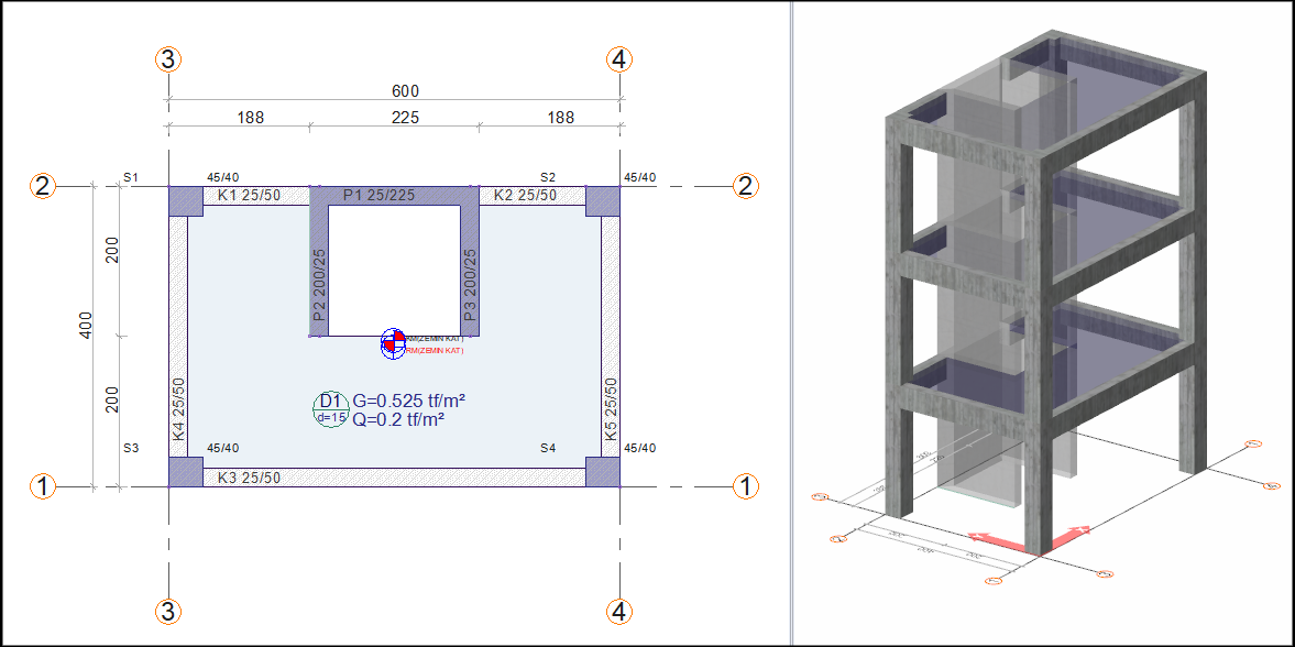 Single column for numerical example and single slab for rigid diaphragm were selected.