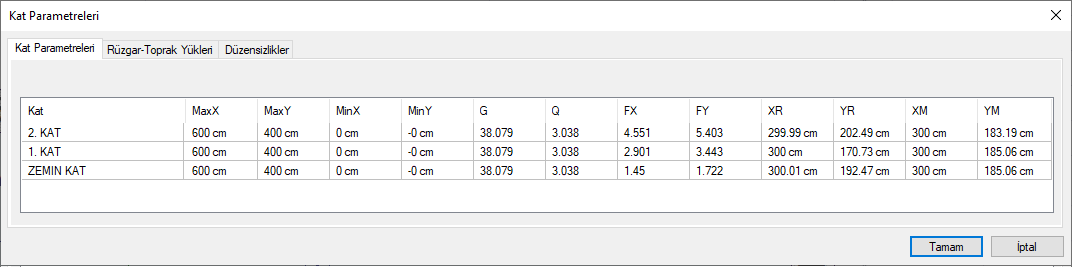 G and Q values calculated by the program for each floor can be seen in floor parameters .