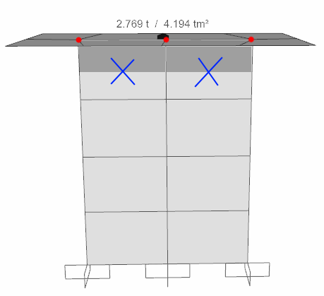 The curtain is connected to the rigid diaphragm by 2 finite elements with 3 joints. Half of the masses of the finite elements attached to the rigid diaphragm is the mass of the curtain attached to the rigid diaphragm.