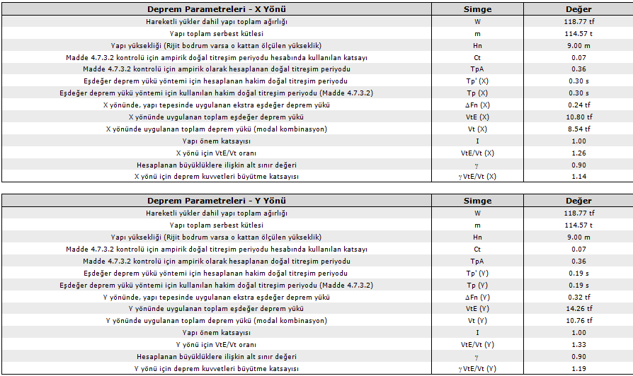 Building weight and free mass of the building printed in earthquake parameters in reports
