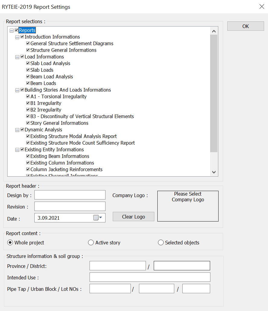After using the Structure Risk Analysis command, the available element information is displayed in the RYTEIE 2019 Report Options list.