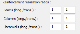 Reinforcement realization ratios ![]() In case the reinforcement realization coefficient is entered, the existing reinforcement areas (whether the reinforcement is entered in the reinforced concrete dialog or calculated according to the defined percentage) are multiplied by these coefficients and the element capacity calculations are made according to these values. |