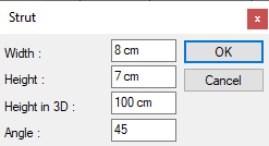 The strut dialog will be displayed. Make the necessary settings here and press the OK button.