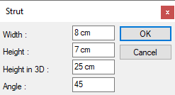 Making settings in the strut settings dialog - Entering the height of 25 cm in 3D ![]()