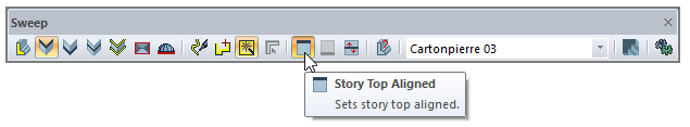 Story Top Aligned automatically adjusts the object elevation to be the same as the story ceiling elevation and draws the object at that elevation. It becomes active on sweep, ceiling cornice, baseboard, border on the wall and cordon.