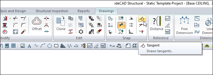 Click the Drawings/Snap/Tangent icon in the Ribbon menu .