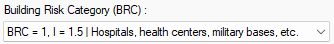 Building risk category (BRC) ![]() Building risk category value is selected from the list according to the purpose of use of the building. It is one of the parameters selected in 2018 TDY wizard for analysis settings, and this row is automatically refreshed when the wizard is used |