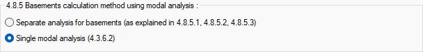 4.8.5 Basements calculation method using modal analysis ![]() Choose one of the separate analysis for baements or single modal analysis calculation method. |