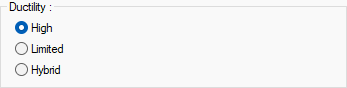 Ductility ![]() If the building will be built with high ductility level, high, if the building design will be made with limited ductility level, limited, if the ductility level will be mixed, hybrid option is selected. It is one of the parameters selected in 2018 TDY wizard for analysis settings, and this row is automatically refreshed when the wizard is used |
