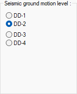 Seismic ground motion level ![]() The option is marked according to the location of the building. It is one of the parameters selected in 2018 TDY wizard for analysis settings, and this row is automatically refreshed when the wizard is used. |