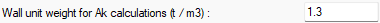 Wall unit weight for Ak calculations ![]() The required wall unit weight is entered for the calculation of the Ak value used in determining the strength irregularity between neighboring stories. |