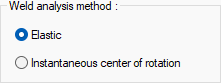 Weld analysis method ![]() Two main calculation methods, the elastic method or the instantaneous center of rotation methods, can be used in connections subject to eccentric force. Make your choice by clicking on the differences in design philosophy of both methods and the efficiency rates in the combination types used. |