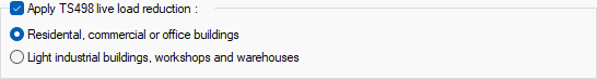 Apply TS498 live load reduction ![]() If checked, Live Load Reduction conditions are applied in the program. According to the relevant article; In the calculation of structural elements bearing loads of at least more than three times, it is possible to reduce the result within certain bases by adding each story live load. The amount of reduction or, depending on it, the reduction values are tabulated separately for different, light industrial buildings, workshops, warehouses and residental, commercial or office buildings. The relevant option is marked according to the intended use of the building. % decrement value: a) From 20% to 80% in residental, commercial or office buildings. b) It is applied from 10% to 40% in light industrial buildings, workshops and warehouses. |
