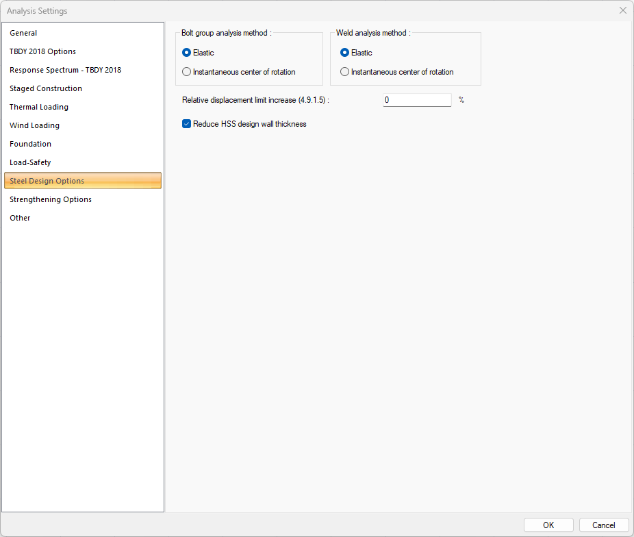 Steel Design Options Tab