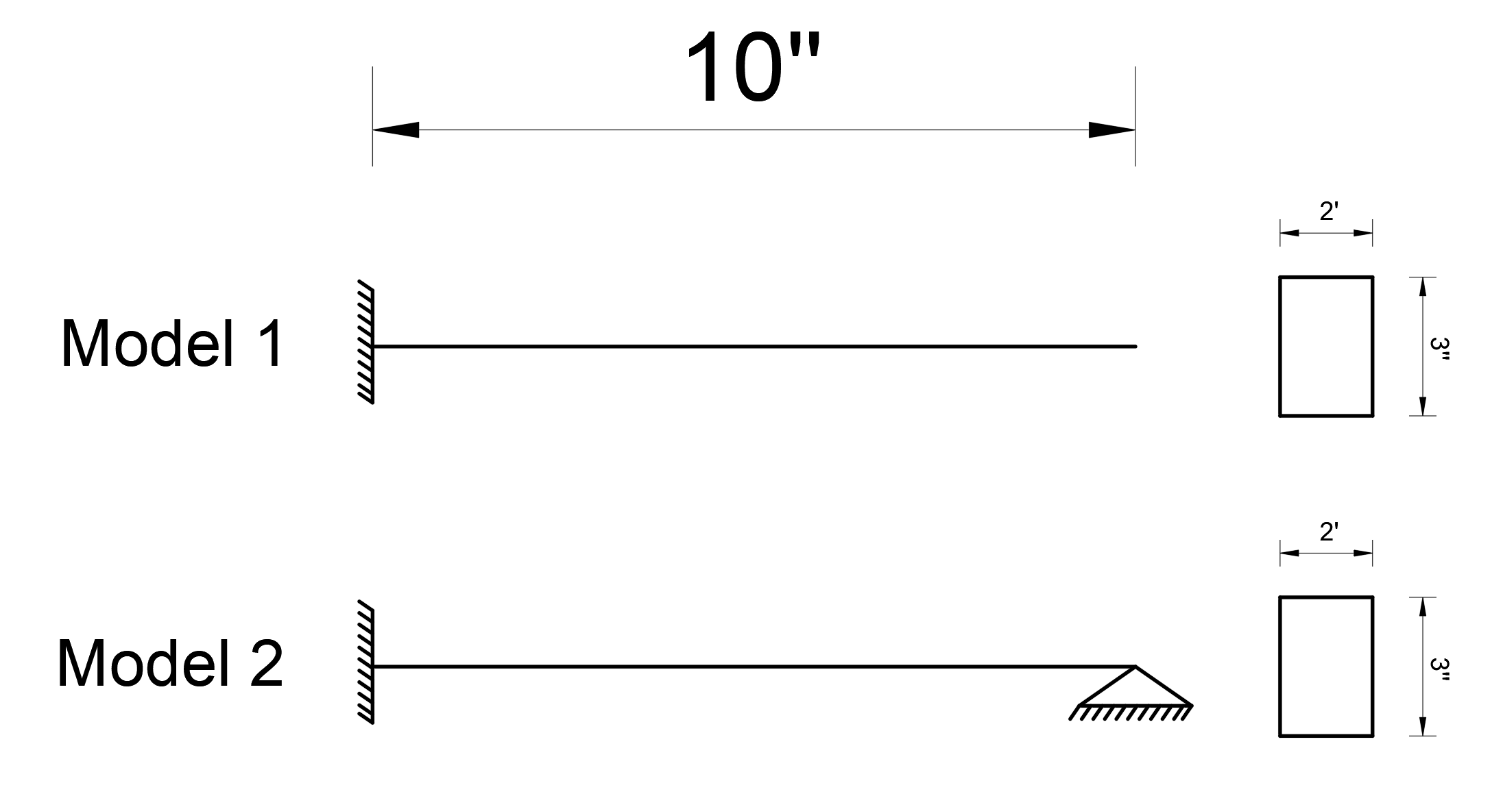 In this example, two first 10 inch long rectangular rod elements are used. One end of these rod elements is flush-mounted, the other rod element is defined as one end is fixed support and the other end is fixed support.