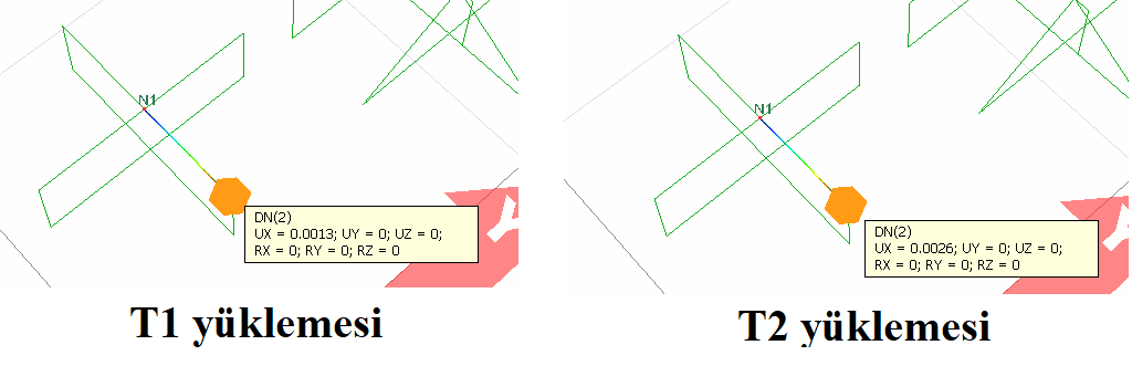 The results of Δ T1 = 0.0013 and Δ T2 = 0.0026 are exactly the same with ideCAD Structural.
