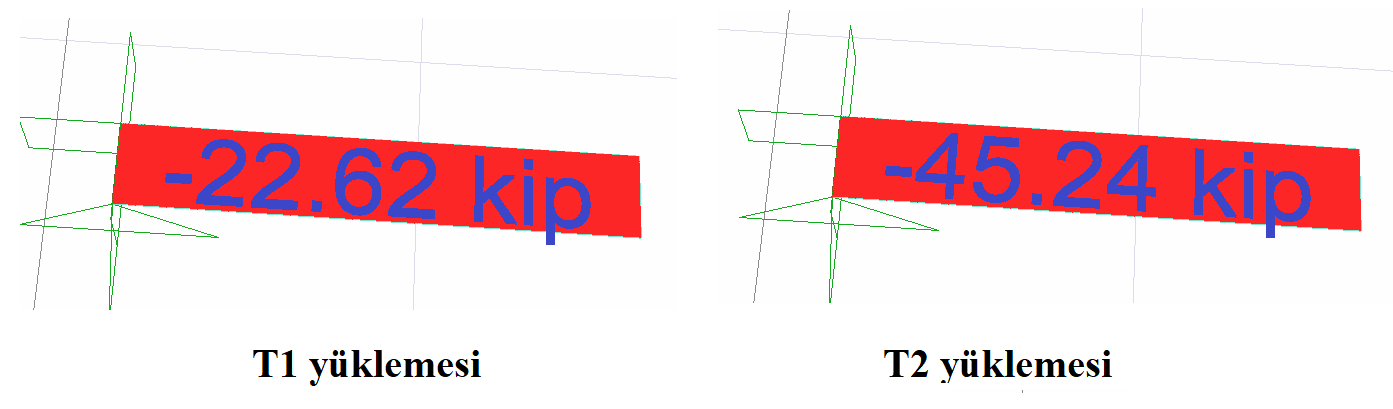 The results of N T1 = 22.62 kip and N T2 = 45.26 kip are exactly the same as for ideCAD Structural.