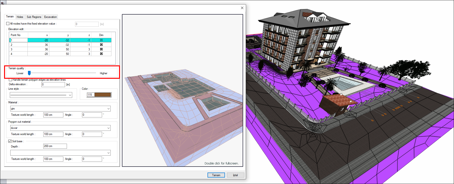 The detail level of the terrain is determined with the "Terrain Quality" option in the terrain settings.