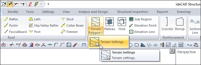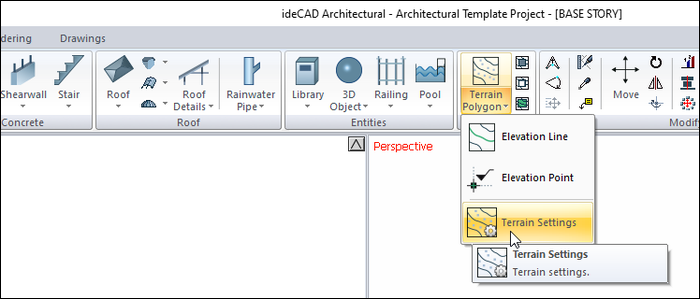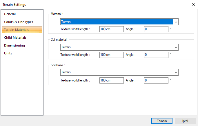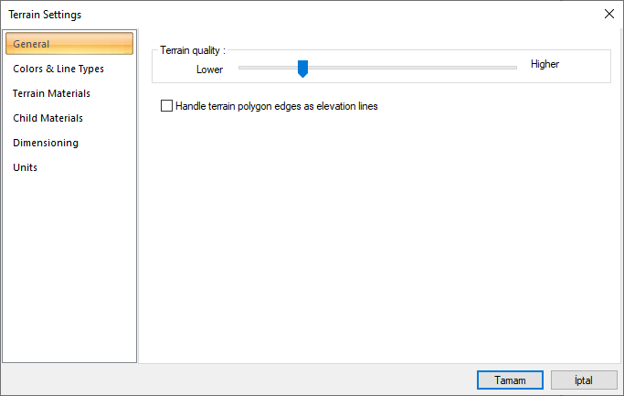 With the Terrain Settings command, settings such as terrain detailing, terrain drawing and material selection are accessed.