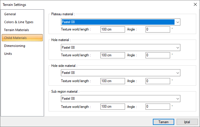 Plateau material ![]() You can select the material of the plateau surfaces from the list by clicking. |