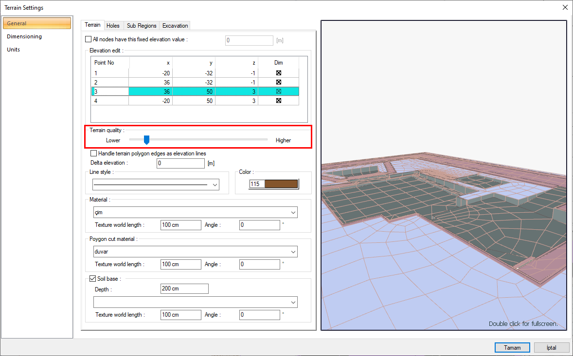 The detail level of the terrain is changed with the Terrain Quality feature.