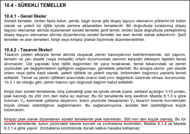 The raft foundation thickness cannot be less than 30 cm. (TS500 10.4.2)
