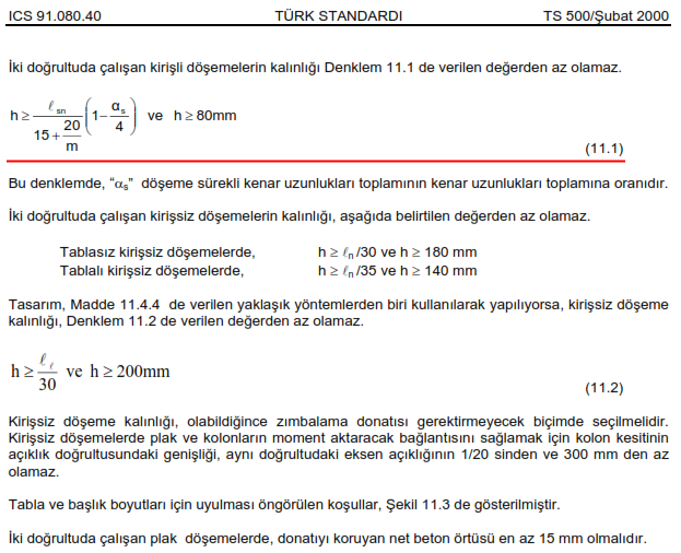 The slab thickness does not meet the requirement. (TS500 11.4.2)