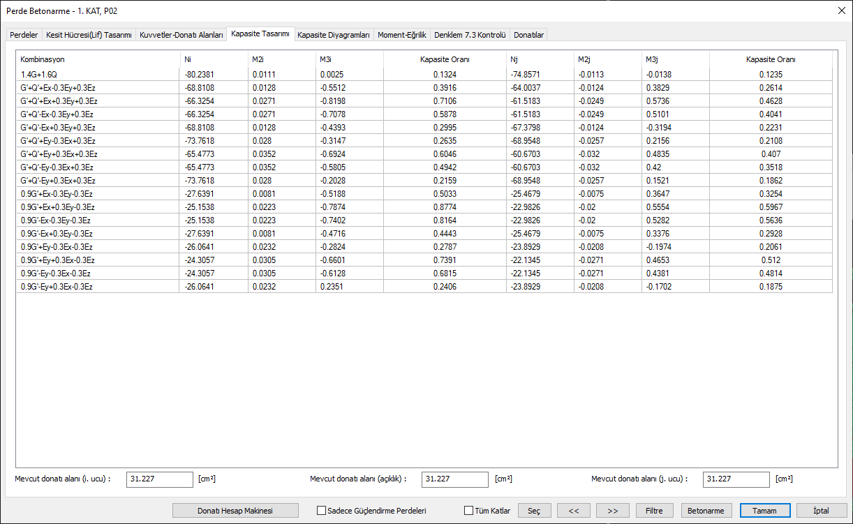Group curtain Capacity Design Ratios are given in curtain reinforced concrete.
