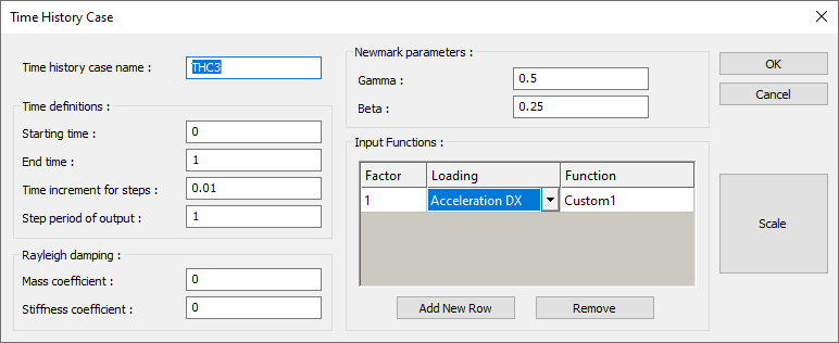 After the function definitions are made, an analysis situation should be created for each function in the X and Y directions. The analysis case definition basically includes time intervals, input functions definitions and Rayleigh damping ratio statement.