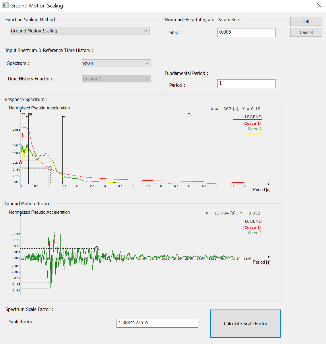 Scale ![]() It is a scaling method used to approximate the acceleration record defined in the time history function to the elastic design spectrum curve. In this method, only a single acceleration record is scaled by zooming into the spectrum curve. For three-dimensional calculation, you can use the Scale Ground Motion command under Analysis list from the Ribbon menu. ![]() |