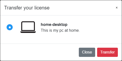 The process of moving the existing license on the device A (office-laptop e.g.) to the device B (home-desktop e.g.) is called license transfer.