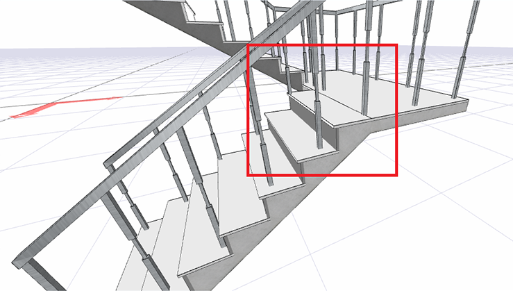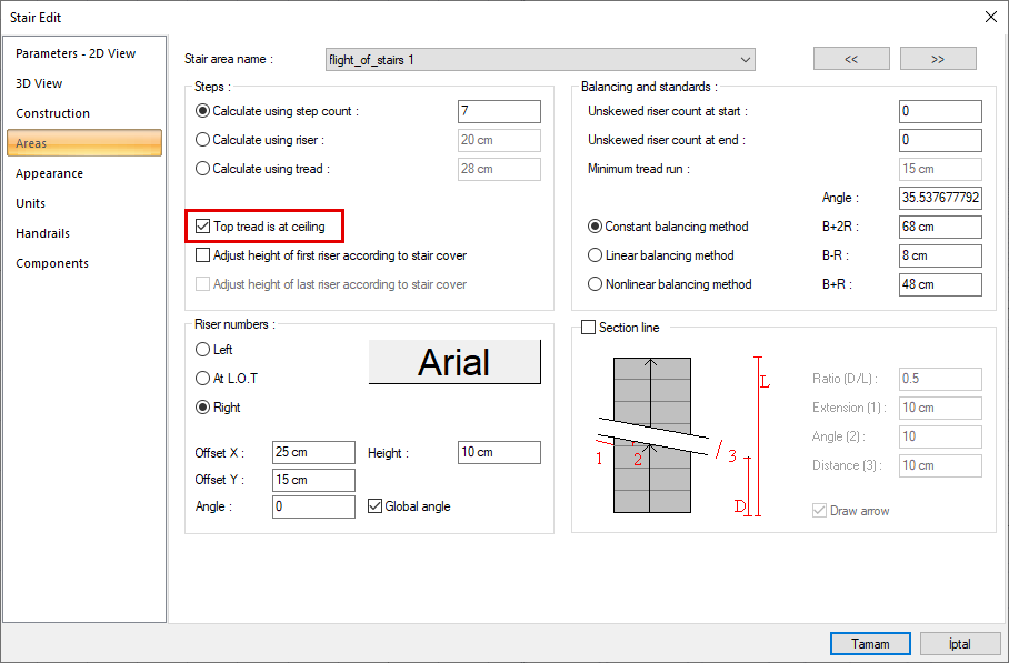 With the feature of the top tread is at ceiling, the last step of the stairs is brought to the same level as the landing. At the same time, this feature is used to bring the last step to the same level as the story slab.